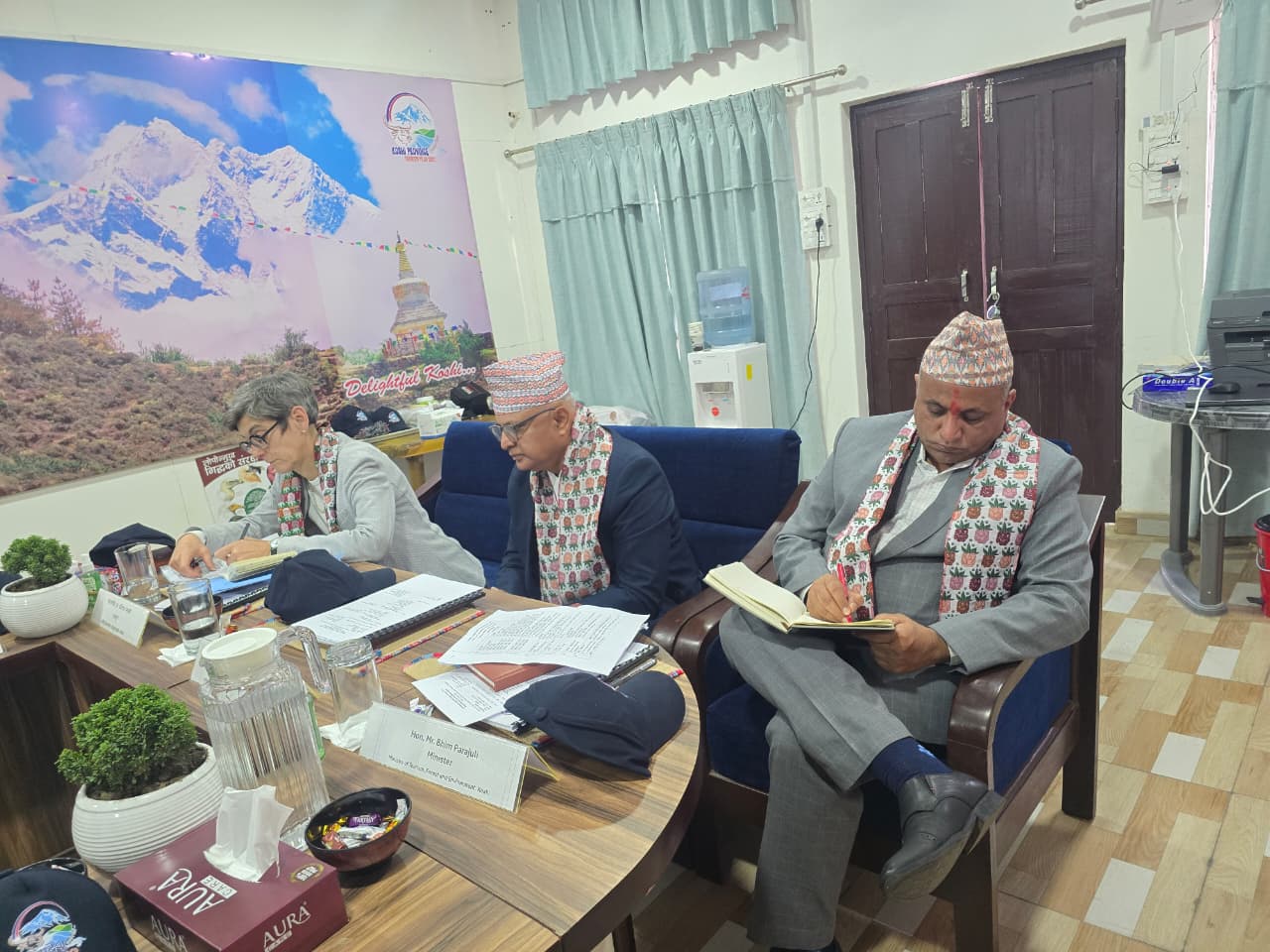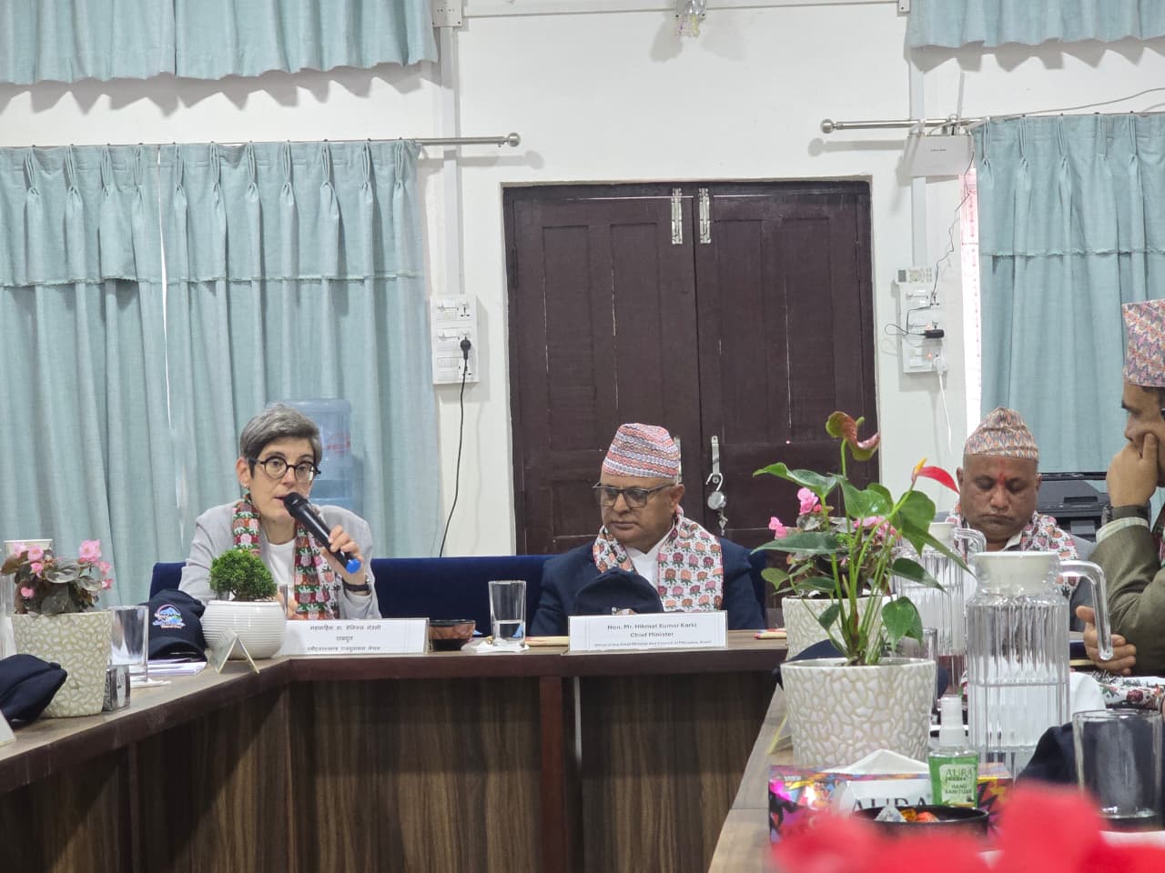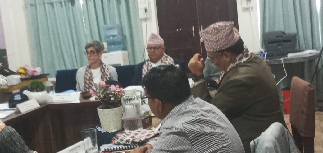 TTDP परियोजना सञ्चालन समितिको तेस्रो वैठकमा मा. मुख्यमन्त्रीज्यू, मा. मन्त्रीज्यू, महामहिम नेपालका लागि स्वीस राजदूत डा. डानियेल म्युवलीज्यू सहित अन्य।